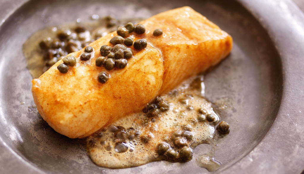 Wild Alaska Halibut with Brown Butter Sauce and Capers