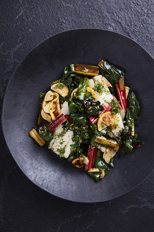 Lemon Alaska Pollock, Dill Butter and Burnt Chard