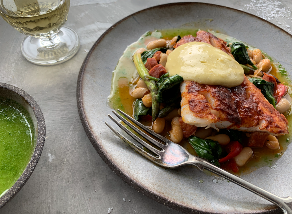 Alaska Pollock, Chorizo, Beans and Greens by Rachel Green